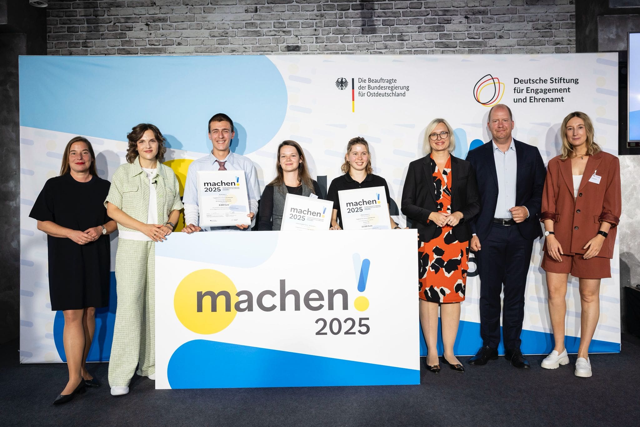 Der Wettbewerb „machen!“ würdigt das vielfältige Engagement in ländlichen Regionen Ostdeutschlands und unterstützt gemeinschaftsstiftende Projekte für den gesellschaftlichen Zusammenhalt, die in Gemeinden mit bis zu 50.000 Einwohnerinnen und Einwohnern umgesetzt werden. Bewerben können sich unter anderem Vereine, Netzwerke, Bürgerstiftungen und Bürgergenossenschaften mit Sitz in den ostdeutschen Flächenländern. Der Wettbewerb der Beauftragten der Bundesregierung für Ostdeutschland wird 2025 zum sechsten Mal umgesetzt. In den Vorjahren wurden bereits über 560 Projekte gewürdigt. Seit 2023 wird „machen!“ in Kooperation mit der Deutschen Stiftung für Engagement und Ehrenamt umgesetzt. Die Deutsche Stiftung für Engagement und Ehrenamt hat im Juli 2020 ihre Arbeit in Neustrelitz aufgenommen. Mit der Stiftung gibt es erstmals eine bundesweite Anlaufstelle zur Förderung ehrenamtlichen Engagements. Sie berät, qualifiziert, fördert und vernetzt Engagierte und Ehrenamtliche und unterstützt diese insbesondere in ländlichen und strukturschwachen Räumen.